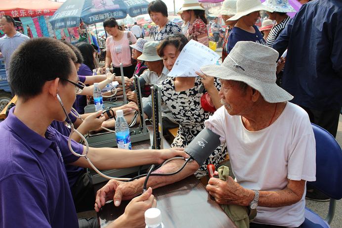 高家柳沟具有光荣的历史,上世纪50年代创办农民记工学习班,教群众识字,受到毛主席的肯定和亲自批示,是全国农村学文化的红旗单位。实践活动恰逢当地五天一次的集会,活动现场人头攒动,前来咨询的群众络绎不绝。经过实践队员的简单体检和分析解释后,他们都流露出满意的笑容,纷纷表达了对实践义诊活动的赞扬和支持。一位老爷爷说:“你们做的是对老百姓有实际好处的事情,而不是走马观花,真希望你们老员工明年再来。”