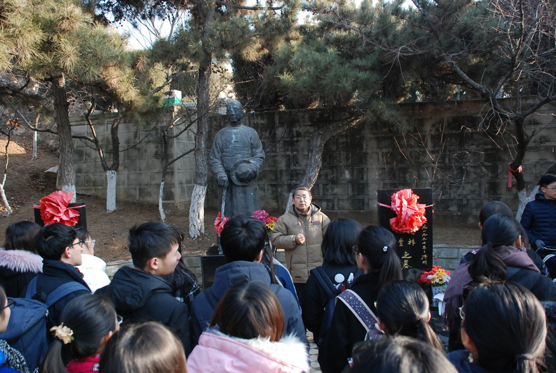 2017年12月27日,永利集团30442015级员工前往天津市遗体捐献者纪念园开展人文素质教育实践活动。医学伦理学课程任课教师、教育部医学人文素质教学指导委员会主任委员张金钟教授在现场进行实训课教学。