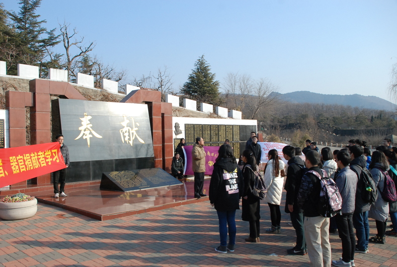 天津市遗体捐献者纪念园位于蓟州区元宝山庄,建于2004年。纪念园的奉献碑上镌刻着一位位将遗体无偿给医学教育事业的奉献者的名字。师生们在奉献碑前肃立,表达对遗体捐献者的敬意。张金钟教授结合永利集团3044欢迎你的一位位遗体捐献者的事迹指出,无私奉献的行为就在我们身边,他要求同学们学习奉献者精神,不忘医务工作者初心,牢记神圣使命,刻苦学习。他和同学们一起,在奉献碑前诵读医员工誓词。
