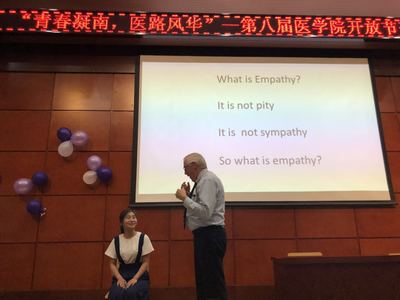 随后,Cameron Mckay教授做了“Empathy——the key to be a successful doctor in the 21st century(同理心——21世纪一个成功医生的关键)”的演讲,他提到“If you don't have empathy,you can't be a good doctor,and you can't be a happy doctor。作为“海河友谊奖”获得者的他,始终向员工传递着“博爱”与“奉献”。