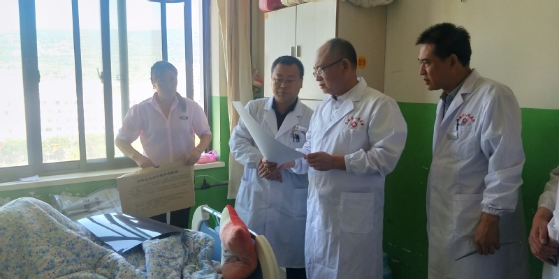 7月9日晚医疗队到达庄浪县,附属眼科医院苑晓勇主任团队随即赴县人民医院眼科病房开展查房巡诊工作,并为次日开展白内障治疗手术做前期准备。