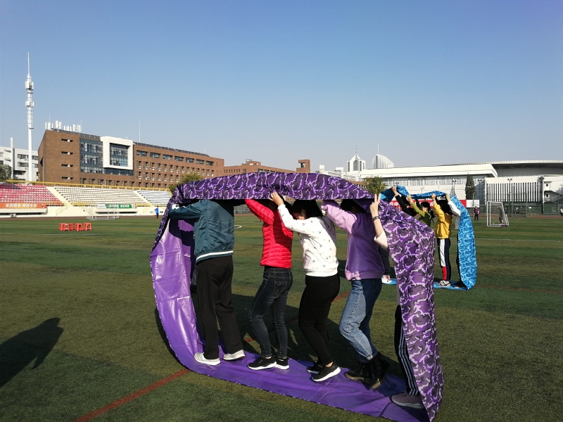 据悉,“大型接力游戏”由团队协作的五人六足、考验柔韧度的下腰过杆、爽到爆炸的指压板跳绳,肺活量与默契并重的双人夹气球共四个环节组成,队员们在赛前抓紧时间练习,分工协作,奋勇争先;小心小心再小心,仔细仔细再仔细——近百米的“河流”,一不留神便会“落水”,“摸石过河”堪称“耗时最长的游戏”;在“戏抢凳子”环节中,比赛场上无男女,团队成员排兵布阵,田忌赛马,奋力一搏;在燃起全场气氛的“拔河”比赛中,只见同学们都双手紧紧抓住绳子,躬着腿,气势不可抵挡。