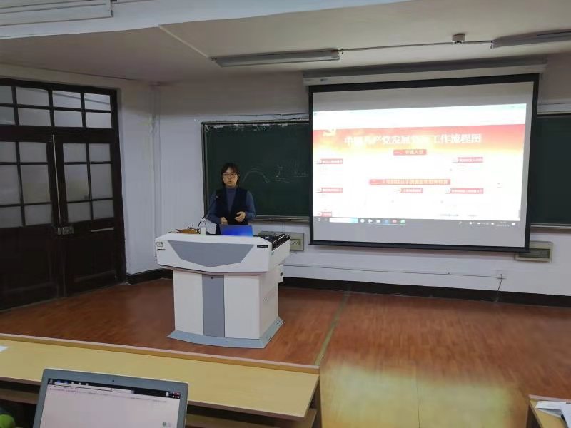 会上,许萌老师通过清晰的发展党员流程图和精心制作的表格,分别从申请入党、入党积极分子的确定和培养考察、发展对象的确定和考察、预备党员的接收、预备党员的教育考察和转正五个方面对入党流程和具体操作方法进行了详细介绍。对比入党积极分子培训班和发展对象培训班的差异,使员工进一步明确发展党员各环节的具体内容与要求,学习入脑入心,工作履职尽责。最后,许萌老师结合工作实际和经验,通过提问学员的方式,解答了党员发展工作中的常见问题。她强调,要加强对发展对象的教育,并对发展对象的入党动机、个人表现、支部培养情况进行综合的审查,确保党员发展质量,保障党员发展工作顺利开展。她要求广大党员骨干要努力克服困难,勇于职责担当,履职尽责,发挥好带头作用。