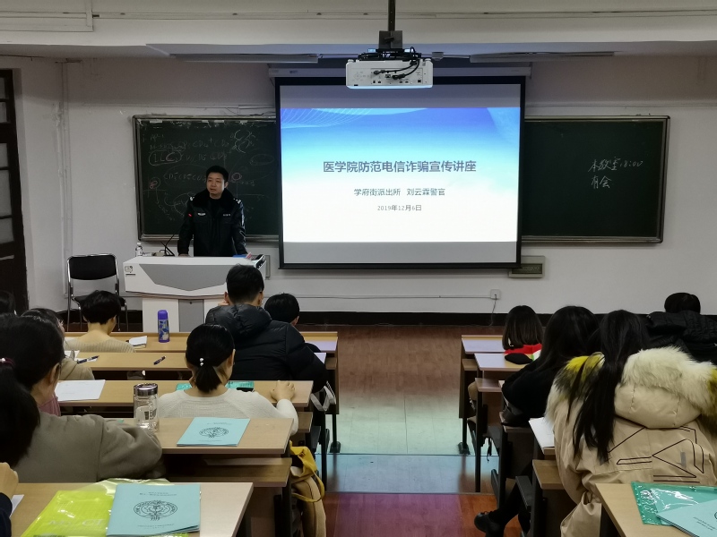 刘警官简要概述近年电信诈骗案件发生情况,数据分析显示,近年来,电信诈骗案件发生率逐年降低,但南开区却呈现上升趋势,且多集中在高校。他表示,电信诈骗的发生与年龄和学历有关,作为在校生,更应该提高警惕,切勿贪小便宜、吃大亏。同时,刘警官针对当前犯罪分子借助手机、网络等通讯工具实施的非接触式网络电信诈骗违法活动以及不断翻新的各种花样诈骗现象,做了详细讲解,以提高同学们防骗意识和甄别能力,提醒大家不要相信以各种理由索要财物的陌生电话和信息,不向对方透露自己及家人的身份信息、存款、银行卡、密码等情况,更不向陌生人转账汇款。