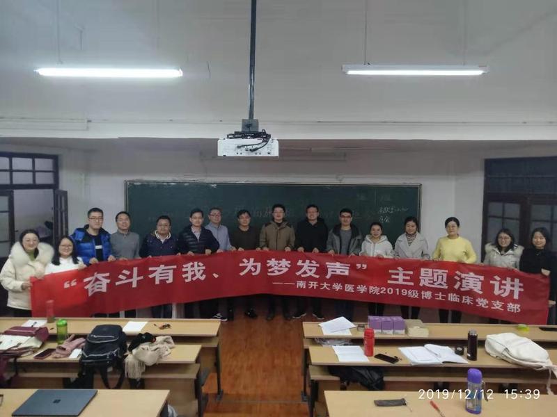 “我们都在努力奔跑,我们都是追梦人”习近平总书记在2019的新年贺词中说的这句话,让许多为了梦想奋斗的人们感动的热泪盈眶。为组织开展好2019年党支部创新百项工程,12月12日,2019级博士临床党支部结合十九届四中全会学习热潮,开展了“奋斗有我,为梦发声”主题演讲组织生活会,进一步弘扬正能量,做最美奋斗者,为伟大的中国梦发声。
