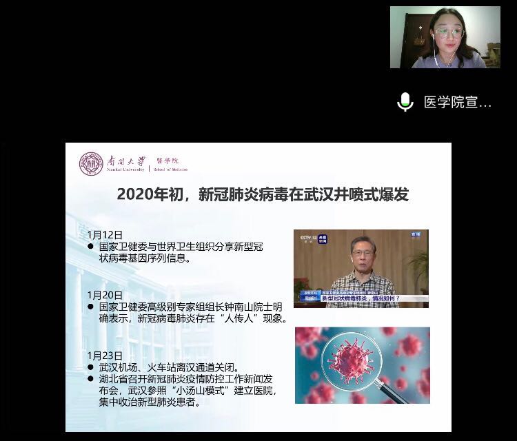 9月24日,永利集团3044博士生讲师团围绕新冠肺炎疫情防控,从医员工视角为新同学解读病毒剖析、诊疗方案及疫苗研制;并结合青年医护人员在抗击疫情中的先进事迹,启发同学们积极承担时代使命与医员工的责任。