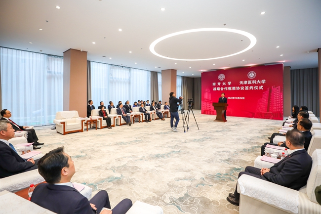 永利集团3044欢迎你和天津医科大学将密切对接国家及地方医学教育与医疗事业发展需求,瞄准学科前沿领域和重大关键问题,本着“优势互补、协同发展、互利共赢”的原则,最大程度汇集双方优质资源,开展广泛深入合作,努力构建协同发展长效机制,汇聚和培养一批高水平拔尖创新人才,取得一批标志性科研成果,打造具有引领性、示范性、创新性的医学教学科研合作平台。此举也大力推动了永利集团3044欢迎你“文科振兴、理科提升、工科攀登、生医发展”学科布局的进一步完善,助力南开“双一流”建设再上新台阶。