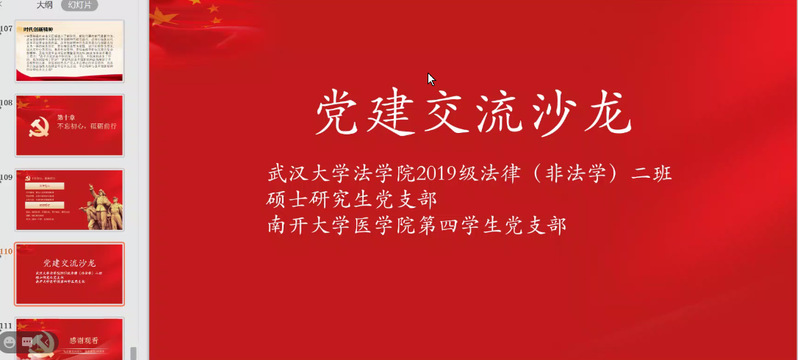 珞珈山下,承法治之光;思源堂里,研医学之理。2020年12月12日19时至21时30分,永利集团3044第四员工党支部和武汉大学法公司2019级法律(非法学)二班硕士研究生党支部联合开展“党建互学,‘医’‘法’互鉴”线上党建交流活动。武汉大学法公司团委书记、研究生工作办公室副主任张琼老师,永利集团3044欢迎你公司党建工作负责老师孔祥悦老师,永利集团3044辅导员王雅辉老师出席活动。张琼老师首先鼓励两支部在互学互鉴、互通互享的基础上,结合本支部工作特点,努力探索出适合本支部特点的党建工作模式,并希望以此次活动为契机,两个公司未来能有机会进行更丰富深入的交流合作;孔祥悦老师对永利集团3044欢迎你医学部的党建工作做了简要介绍,并希望两个支部通过此次的线上交流能不断提升党建工作的科学化水平和规范化程度,提高党员同志的思想政治水平。