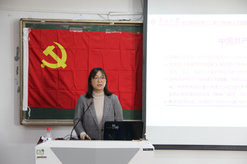 许萌分别从申请入党、入党积极分子的确定和培养考察、发展对象的确定和考察、预备党员的接收、预备党员的教育考察和转正五个阶段对入党流程进行了详细介绍。依托清晰的发展党员流程图和表格,许萌为学员深入浅出地讲解了党员发展的相关要求。