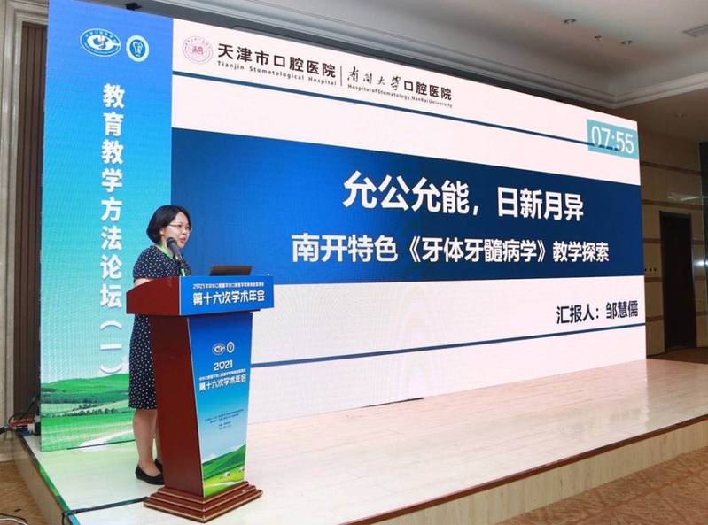 本次会议以“坚持以本为本,推进口腔医学本科公司产品改革”为主题进行了广泛深入的交流。口腔内科学教研室主任邹慧儒经择优选拔在公司产品方法论坛作了《“允公允能,日新月异”南开特色牙体牙髓病学教学探索》的专题报告,主要阐述了公司牙体牙髓病学教学通过十余年探索,初步形成“允公允能、日新月异”南开特色牙体牙髓病学教学模式,培养了一批公能兼备、具有南开特色的口腔医学人才。