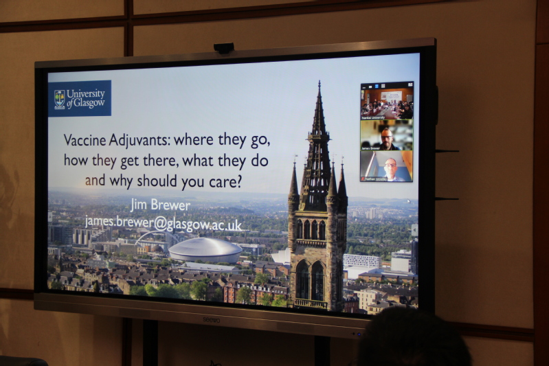 James Brewer教授为大家做了题为“疫苗佐剂作用于人体的进程,你该关注什么?”的专题学术讲座。在讲座中,James Brewer教授首先介绍了疫苗佐剂的种类及其应用现状和发展趋势。接下来他重点分享了其实验室关于疫苗佐剂的主要研究成果,其利用先进的多光子成像技术形象地展示了DC细胞与T细胞的相互作用,并进一步明确了疫苗佐剂对DC/APC细胞的功能及T细胞激活的具体影响。最后,在COVID-19全球流行的大背景下,James Brewer教授还介绍了疫苗佐剂在新冠疫苗制备中的重要作用。