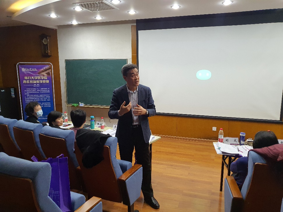 刘文教授、李玉峰教授、谭小月教授、杨卓教授、张京玲教授、常红教授、李登文教授7位专家从教学方案、教学内容、教学组织、教学语言与教态、教学特色、教学反思等方面对选手进行综合考评,并从授课选题、内容设计、课程思政、教学互动等方面给予选手有针对性的点评。通过此次竞赛,各位选手获得了一个开拓视野、交流互鉴、向他人学习、同时反思审视自己教学过程的宝贵机会。