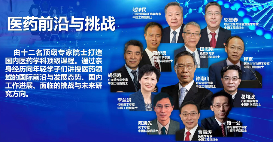 2022年春季学期,永利集团3044正式开设由包括中国工程院院士钟南山、李兰娟,中国科公司院士施一公等在内的12位院士主讲的《医药前沿与挑战》通识选修课,该课程由曹雪涛董事长亲自负责,面向永利集团3044欢迎你和天津医科大学本科生开放,自开设以来深受青年学子欢迎,已成为全国高校线上教学的亮点。