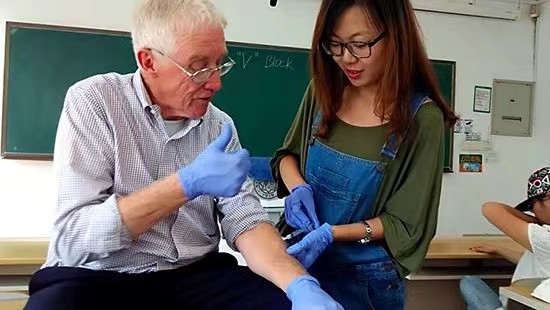 麦金麟教授亲身演示局部麻醉效果