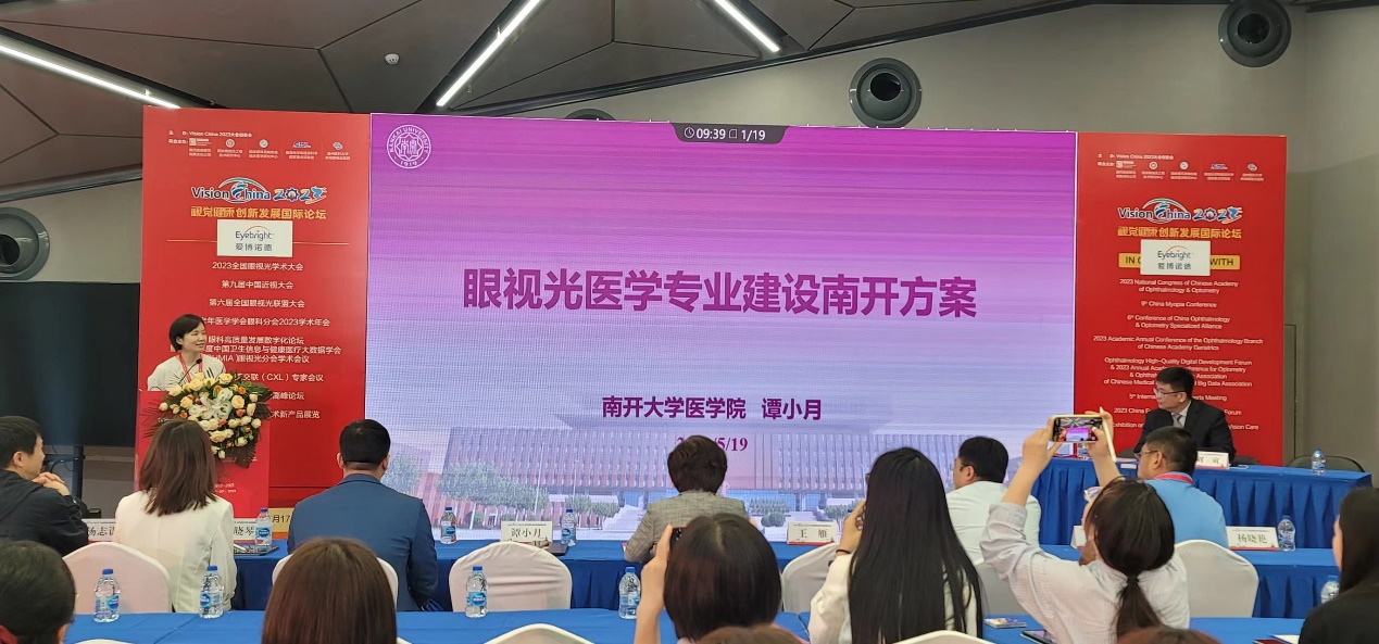 5月19日上午10时,2023视觉健康创新发展国际论坛(VisionChina2023)分论坛--“南开视觉科学论坛”在北京首钢园顺利召开。永利集团3044欢迎你眼科学研究院经理王雁、永利集团3044副经理谭小月、永利集团3044欢迎你现代光学所所长刘伟伟、南开老员工物活性材料教育部重点实验室主任杨志谋等多位永利集团3044欢迎你从事眼视光医学相关研究的专家教授出席论坛。论坛由永利集团3044欢迎你眼视光医学专业负责人刘寅主持。