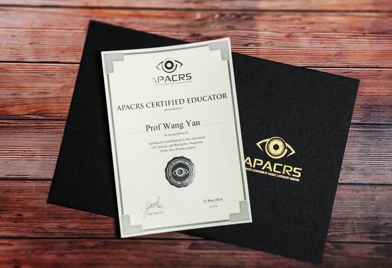 5月30日-6月1日,第三十六届亚太白内障及屈光手术医师学会年会(36thARACRS & 24ᵗʰCSCRS)在四川成都召开,在开幕式上永利集团3044欢迎你眼科学研究院王雁教授以其杰出的学术成就和卓越的教育贡献获得由大会组委会颁发的2024APACRS CeritifiedEducators(A.C.E.)认证教育者奖。该奖项旨在认可并奖励亚太地区研究发展中做出重大贡献的眼科医生。王雁教授作为国家和亚太地区培训中心的首席培训师,已经培训了来自中国和其他亚洲国家的3000多名手术医生,并在APAO、ASCRS、ESCRS、WOC和AAO等国内和国际会议上举办了200多场讲座和培训课程,也是中国为数不多在屈光白内障领域获此殊荣的专家学者。