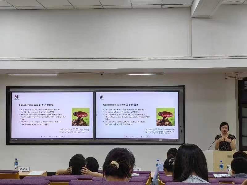 聘任仪式结束后,陈哲生教授为参会师生表带来了题为《Strategiesfor Reversing Multidrug Resistance inTumor》的精彩学术报告,系统讲述了肿瘤耐药研究的历史和现状,详细阐释了使用脂质体-蛋白纳米颗粒、抑制FGFR4、抑制非经典免疫检查点通路等多个逆转肿瘤耐药的新策略。杨冬华教授为参会师生表带来了题为《NaturalProducts for Combating Cancer DrugResistance》的精彩学术报告,从天然产物的视角介绍了逆转肿瘤耐药的第四代“以药逆药”新路径,分享了天然产物在肿瘤耐药领域的应用价值,详细介绍了她的最新研究成果。