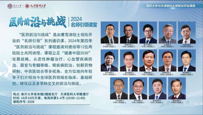 新一季名师引领系列通识课之“医药前沿与挑战”即将开始!