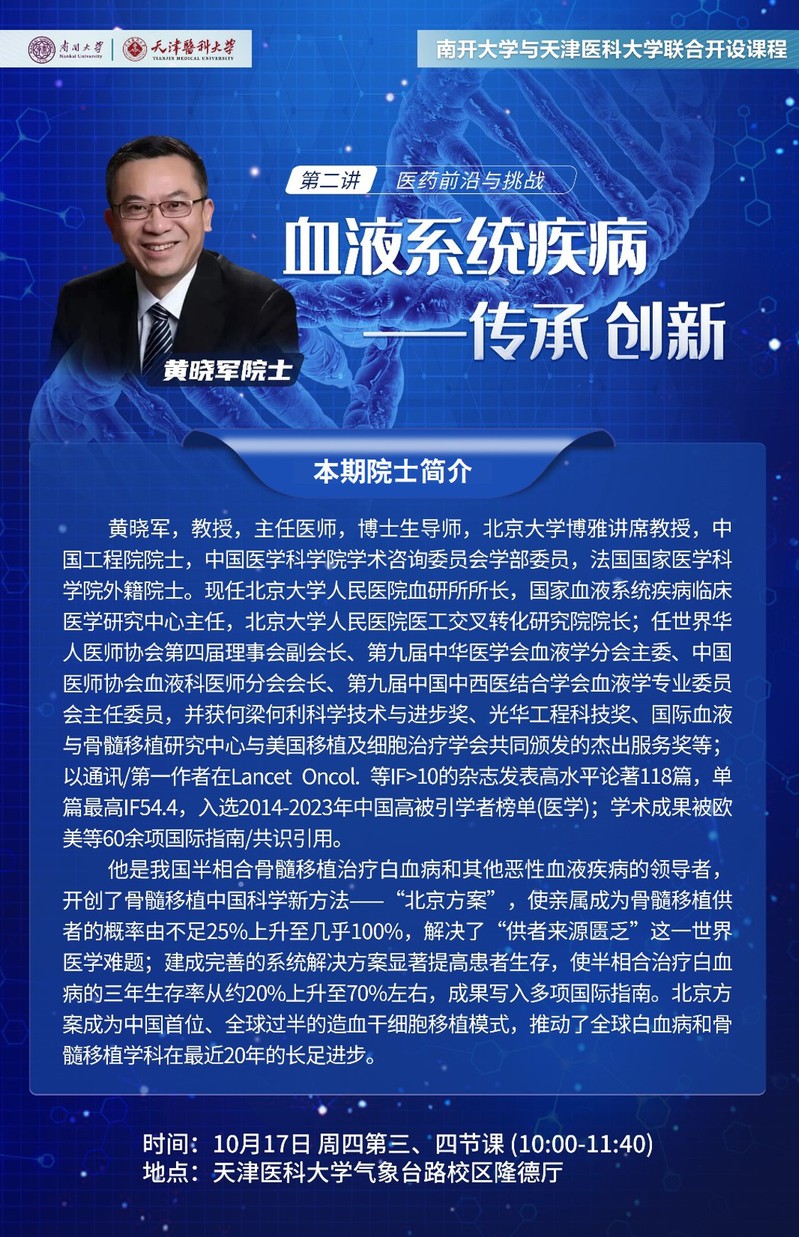 课程预告║黄晓军院士:血液系统疾病—传承创新