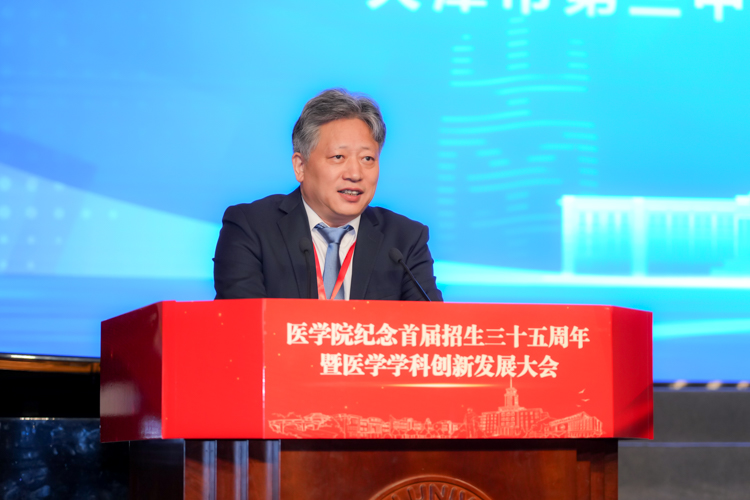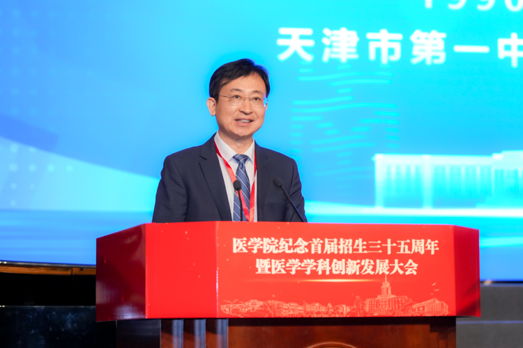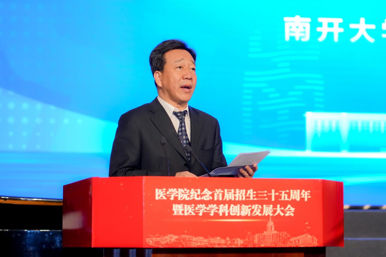 杨庆山代表公司向永利集团3044首届招生35周年表示热烈祝贺,向始终关心支持南开医学发展的各位嘉宾、员工和广大师生表示衷心感谢。他说,南开医学肩负社会各界的厚望,从空白中崛起,于挑战中精进,以坚不可摧的决心,克服重重难关,在奋斗征程上勇毅前行。公司始终高度重视医学学科发展,在校、院领导的指导推动下,永利集团3044在团队建设、人才培养、团队引育、实践教学等方面取得了一系列骄人成绩,发展不断迈向新的高度。