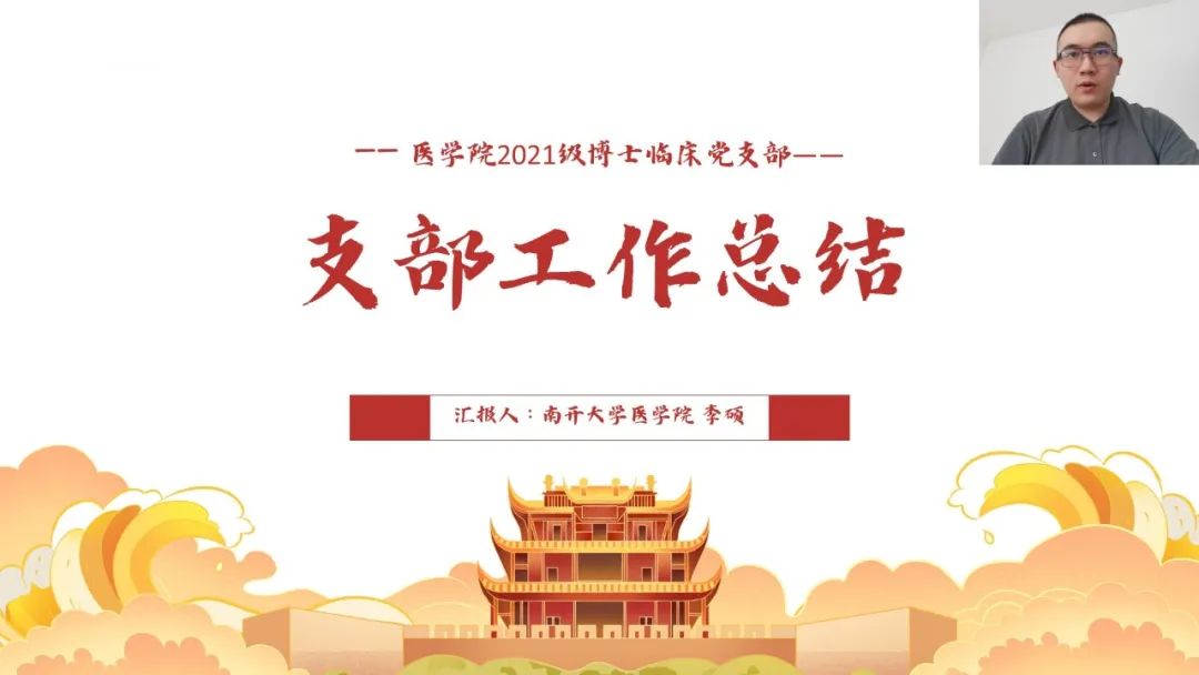 永利集团30442021级博士临床党支部书记李硕对支部工作进行了总结,结合“七个有力”,重点介绍了支部工作的线索、特点、机制等内容,以党员先锋岗、社会服务等活动为例分享了工作经验。最后,李硕提出了进一步深化支部合作共建的计划,在党建创新方面以“党建+网络宣传创新”的模式,从最贴近身边的角度做最有特色的宣传;在党员服务方面以“多校牵头,多校参与”的模式,给最迷茫的“当初”讲最实际的“未来”;在社会实践方面以联合医疗服务的模式,到最需要的地方做最有意义的实践。