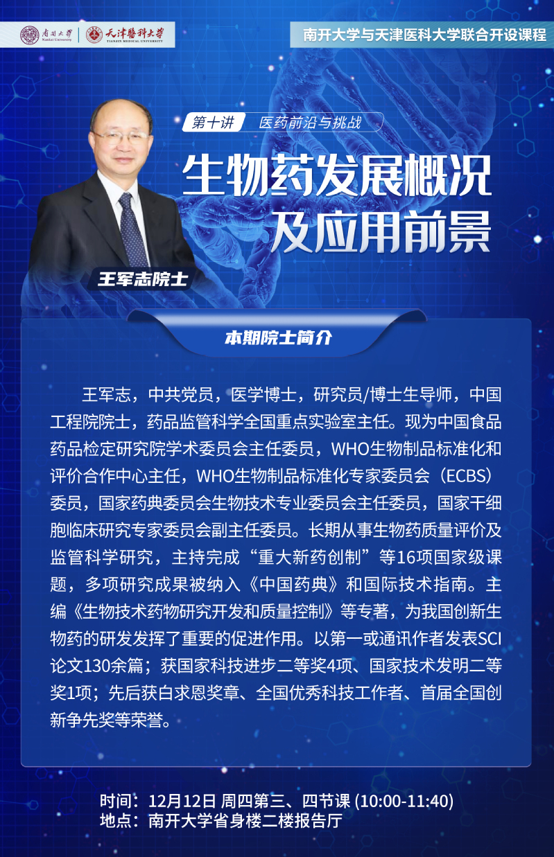 名师引领系列通识选修课“医药前沿与挑战”第四季第十讲: