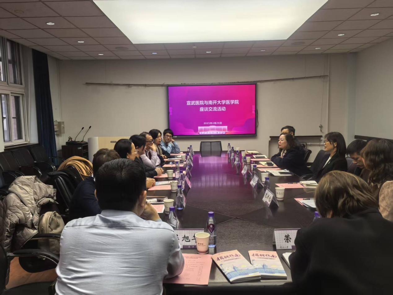 在座谈环节,许萌对代表团一行的到来表示欢迎,回顾双方的合作渊源,并强调深化医教协同对服务国家健康发展战略的重要意义。孙凯洁详细介绍了宣武医院的临床科研优势,重点推介交叉学科博士后培养机制、雄安院区建设规划及今年人才招聘需求情况。王友江结合历年毕业生就业趋势,表示精准对接医疗行业需求,输送公能兼备具有较强实践能力的应用型高级专门人才,为推动健康医疗产业发展做出积极贡献。