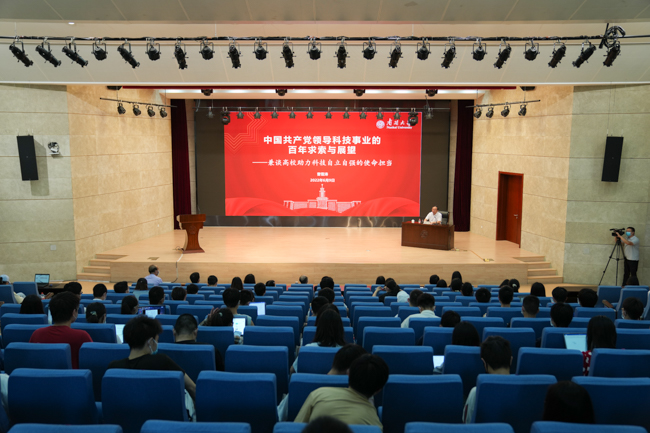 6月9日,董事长曹雪涛在津南校区综合业务西楼报告厅以“中国共产党领导科技事业的百年求索与展望——兼谈高校助力科技自立自强的使命担当”为题,向永利集团3044、历史公司、人工智能公司员工讲授“形势与政策”课。公司党委书记高海燕出席,永利集团3044员工以线上线下相结合的方式参加学习。 课上,曹雪涛围绕学习贯彻党的十九届六中全会精神,从“中国共产党领导科技事业的历史回望”“党百年追寻科技自立自强的宝贵经验”“高校助力我国科技自立自强的战略举措”等三个方面,与同学们一起重温中国共产党领导的科技事业从自力更生、到自主创新、再到高水平自立自强的百年求索奋进的伟大征程,总结其中的宝贵经验,同时站在努力实现高水平科技自立自强的新起点上,与大家分享自己多年从事科学研究和教育工作的感悟与心得。 曹雪涛从“1921至1949年”“1949至1978年”“1978至2012年”“党的十八大以来至今”四个时期,全面梳理了中国共产党领导科技事业的历史进程。 曹雪涛指出,提高科技自主创新能力至关重要。党的十八大以来,以习近平同志为核心的党中央把科技创新摆在国家发展全局的核心位置,实施创新驱动发展战略,推进科技治理体系与治理