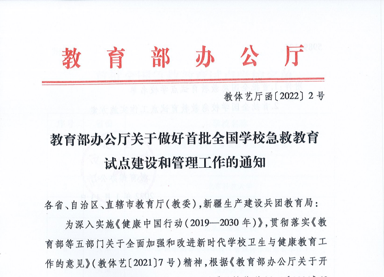 (通讯员彭茜)1月19日,永利集团3044欢迎你被教育部认定为首批全国急救教育试点公司。此次经公司自主申报、省级教育行政部门审核推荐,教育部综合认定并公示,全国共有201所公司被确定为首批全国急救教育试点公司。据悉,该项工作为教育部实施青少年急救教育行动计划的第一步。10月8日,教育部办公厅为深入实施《健康中国行动(2019—2030年)》,贯彻落实《教育部等五部门关于全面加强和改进新时代公司卫生与健康教育工作的意见》(教体艺〔2021〕7号)精神,加强公司急救教育,保护青少年生命健康,为社会培养乐于施救、敢于施救、善于施救的人员,向全国发出了“开展全国公司急救教育试点工作”的通知。在公司设备处大力支持下,公司由永利集团3044牵头组织申报材料,成功获批首批全国急救教育试点公司。生命健康是人类社会文明进步的基础和前提。该项工作是以习近平新时代中国特色社会主义思想为指导,深入贯彻落实全国教育大会精神,牢固树立“健康第一”的教育理念,以提升员工健康素养为核心,以普及急救知识和技能为重点,以提高校园应急救护能力为目标的重要举措。此次获批是教育部对永利集团3044欢迎你应急教育工作基础和能力的认可。获批后,永利集团3044将会同设备处、教务