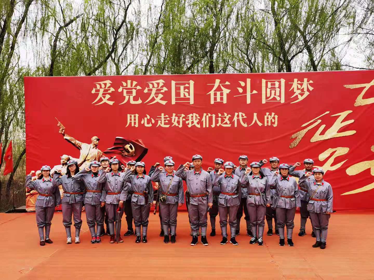 4月1日,公司党委组织教工党员前往西青区辛口镇第六埠村开展“走英雄长征路忆峥嵘岁月史致敬建党百年”主题党日活动,旨在让党员体会革命前辈坚定的政治信仰,牢记党员宗旨和义务。同时在清明节前夕,通过“重走长征路”的形式,向革命先辈伟大的长征精神致敬。活动开始后,老师们换上红军装,重温入党誓言,列队出发踏上红军长征之路。路线模拟再现了血战湘江、四渡赤水、巧渡金沙江、飞夺泸定桥等经典战役,再现了召开遵义会议、征服冰山雪岭、踏过沼泽草地,最终实现胜利会师的过程。通过近两个小时的徒步,大家切身感受到了长征的艰辛,胜利会师后全体党员齐唱《我和我的祖国》,祝福伟大的祖国繁荣昌盛。通过本次活动,大家共同回顾了党为中国人民谋幸福、为中华民族谋复兴的光辉历程,深刻理解了长征精神的内涵,更加坚定了走好新时代长征路的信念。引导公司教工党员在工作中发扬长征精神,履行新时代教师责任,落实好立德树人根本任务,坚定理想信念,迎接建党百年!