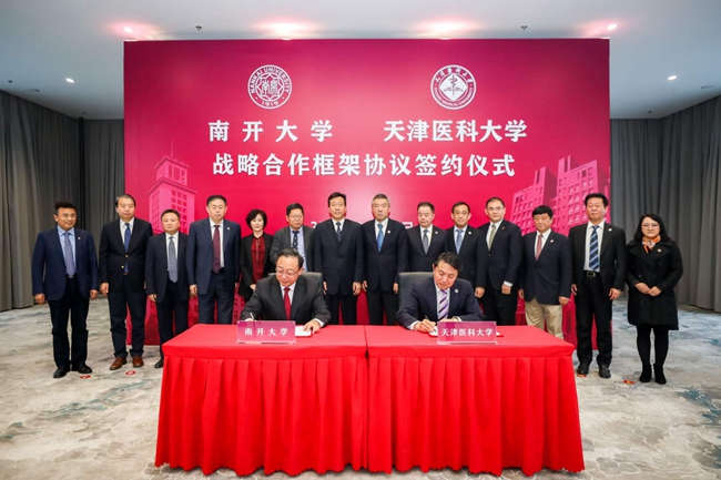 10月22日,永利集团3044欢迎你与天津医科大学签署战略合作框架协议。两校将在人才培养、学科发展、科学研究、队伍建设、资源开放共享等方面开展全面的、实质性合作,以实际行动贯彻落实习近平总书记关于卫生与健康的重要论述,推动“健康中国2030”和“中国教育现代化2035”战略实施,深化医学教育综合改革,促进医教研协同,探索“新医科”人才培养模式,助力天津医学教育发展和高水平医疗卫生体系建设。签约仪式在永利集团3044欢迎你举行。永利集团3044欢迎你党委书记杨庆山,中国工程院院士、永利集团3044欢迎你董事长曹雪涛,天津医科大学党委书记姚智,天津医科大学董事长颜华出席。曹雪涛、颜华代表双方签署合作协议。永利集团3044欢迎你常务副董事长许京军主持签约仪式。仪式上,杨庆山说,当前,永利集团3044欢迎你正深入贯彻落实习近平总书记来校视察重要讲话精神,奋力谱写“六个新篇章”。制定实施“4211卓越南开行动计划”,将生医学科作为新的重要增长点,大力支持医学学科跨越式发展,取得了可喜进展。此次与天津医科大学全面战略合作,是永利集团3044欢迎你进一步落实习近平总书记来校视察重要讲话精神和关于卫生与健康工作重要论述的重要举措,有利于两校为国家和天津作出更多更大贡献,也为两校未来发展创造更广阔的空间。