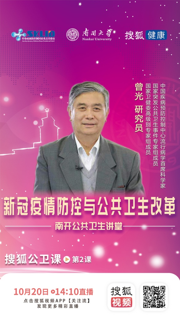 报告会信息:主办单位:永利集团3044欢迎你公共卫生与健康研究院、天津公共卫生与健康联合研究院、中国疾病预防控制中心传染病预防控制国家重点实验室时间:2020年10月20日(周二)14:00-15:45地点:永利集团3044欢迎你津南校区综合业务西楼122报告厅(一)领导会见及致辞时间内容主持人14:00 –14:10永利集团3044欢迎你王磊副董事长会见中国疾病预防控制中心曾光研究员14:10 –14:25永利集团3044欢迎你王磊副董事长致辞徐建国院士14:25– 14:30永利集团3044欢迎你王磊副董事长为曾光研究员颁发南开公共卫生讲堂纪念证书(二)学术报告时间题目报告人主持人14:30 –15:30新冠疫情防控与公共卫生改革中国疾病预防控制中心流行病学首席科学家曾光 研究员徐建国 院士15:30 –15:45提问环节师生听众对报告中感兴趣的内容进行提问曾光研究员简介:曾光,北京人,1946年出生。1970年河北永利集团3044医疗系毕业,1982年协和医大流行病学硕士研究生毕业。中国疾病控制中心研究员,博士生导师。流行病学首席专家(2000-2019年);北京市政府参事(2007年至今)。中华医学会公共卫生分会第七届主任委员;中国现场流行病学培训项目创始人,荣