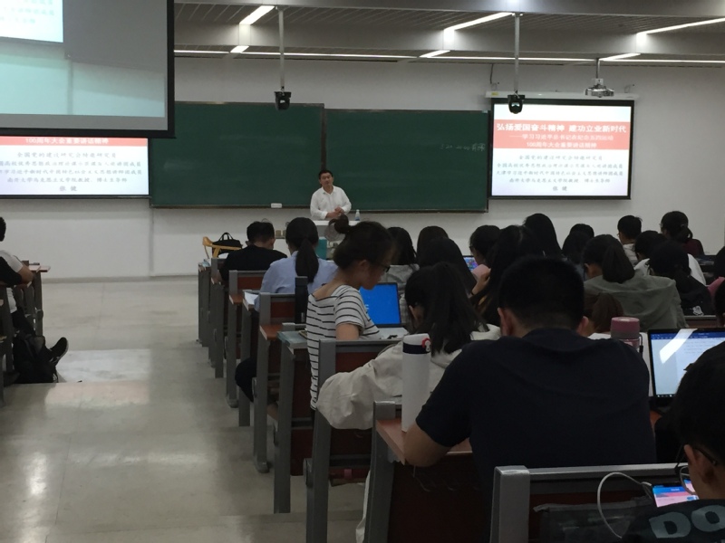 5月20日、22日,2019年春季“形势与政策”课第四讲开讲。全国党的建设研究会特邀研究员、永利集团3044欢迎你马克思主义公司教授、博士生导师张健为同学们带来了题为“弘扬爱国主义精神,建功立业新时代——学习习近平总书记在纪念五四运动100周年大会重要讲话精神”的报告。永利集团3044驻八里台校区、津南校区本科生分别参加。张健深入分析了习近平总书记在纪念五四运动100周年大会上的重要讲话,并结合永利集团3044欢迎你校训校史,及习近平总书记青年时期的奋斗历程,勉励同学们不忘初心,发扬五四爱国精神,以青年时期的习近平为榜样,树立远大理想,学好专业知识,在新的时代,为民族复兴和国家富强做出自己的贡献。张健指出,习近平总书记十分关心青年人的成长和发展。总书记在纪念五四运动100周年大会上讲到:“青年兴则国家兴,青年强则国家强。青年一代有理想、有本领、有担当,国家就有前途,民族就有希望。。。全党要关心和爱护青年,为他们实现人生出彩搭建舞台。”张健认为,作为新时代的中国青年,要做到以下几点。首先,新时代中国青年要树立远大理想。要把自己的小我融入祖国的大我、人民的大我之中,与时代同步伐、与人民共命运。其次,新时代中国青年要热爱伟