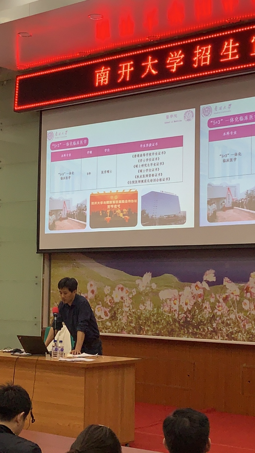 为增进全国范围内高等中学员工和家长对永利集团3044的认识和了解,永利集团3044组织公司领导、学术带头人、各专业一线教师,以及各大联合办学医院的领导和临床医生,赴全国各地多所重点高中开展2019年本科招生宣讲系列活动。5月18日和19日两天,永利集团3044天津招生宣传组分别在天津市耀华中学、天津市新华中学、天津市第七中学、天津市静海第一中学进行了多场招生宣讲会,共吸引了近千名高二高三毕业生家长参加。宣讲团成员由永利集团3044欢迎你招生办公室领导、永利集团3044副经理张艳,永利集团3044副经理、副书记许萌,永利集团3044欢迎你附属口腔医院教学办主任林欣,永利集团3044欢迎你附属眼科医院盛晓玲,以及各专业一线教师刘寅、孙伟、米雪等组成。宣讲会上从永利集团3044办学特点、新专业设置、本科教育优势等方面做了全面介绍,还有永利集团3044欢迎你及永利集团3044招生政策解读;优秀毕业生代表经验介绍;与导师面对面咨询、交流;发放宣传材料等环节。5月18日上午10点,张艳、许萌、刘寅等到耀华中学参与永利集团3044欢迎你专场招生宣传,来自耀华中学、耀华嘉诚国际公司的200余位家长参加了宣讲会。集中宣讲结束后,公司教师集中回答了家长关心的各种问题。从反馈情况中可以发现,家长普遍看好公司的发展前景,特别是对智能医学工