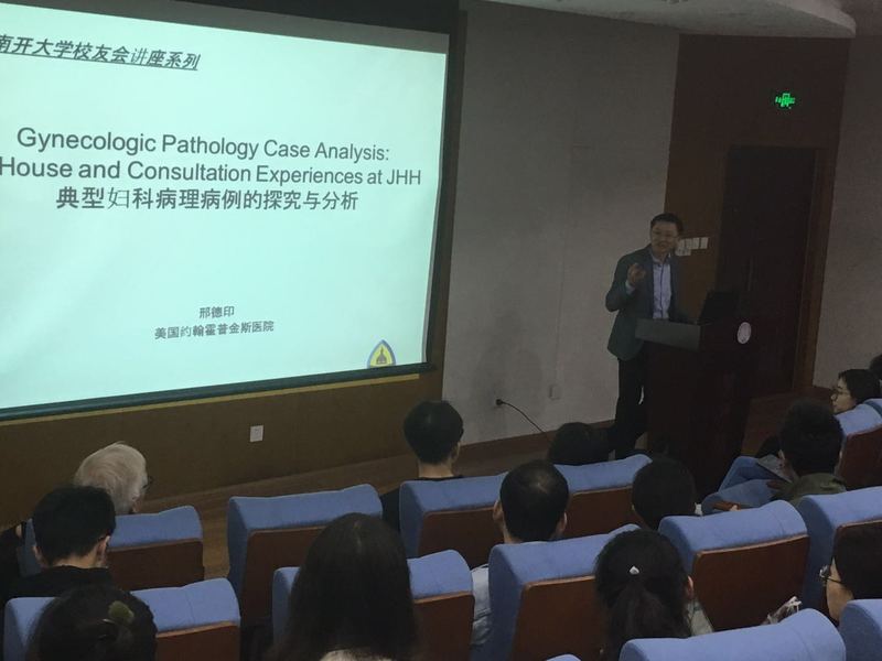 (通讯员李君洋)4月2日,永利集团3044“杏林芳华”员工论坛在八里台校区医学国际协同创新中心报告厅举行。1992级员工邢德印受邀以“典型妇科病理病例的探究与分析”为题展开讲座。2015、2016级临床专业本科生及部分教师研究生参加了讲座,整个报告厅座无虚席。邢德印1999年从永利集团3044毕业后,曾先后赴中科院肿瘤医院、哈佛永利集团3044附属麻省总医院(MGH)病理系以及麻省理工公司(MIT)癌症中心深造从事研究工作,目前担任约翰霍普金斯医院(JHH)病理学和肿瘤学副教授,约翰霍普金斯医院GYNPathologyIn-HouseService副主任,妇科病理专家会诊组成员,约翰霍普金斯医院国际远程病理会诊负责人。邢德印以自己在实际临床中遇到的会诊疑难特殊病例为主线,介绍了几例妇科肿瘤病例,讲述了自己的临床工作状态、诊疗思路以及临床与科研相结合的医学思维。很多看似简单的临床病例,其背后都隐藏着“玄机”。一例有子宫内膜异位症的44岁妇女经详细检查发现卵巢上同时有三种完全不同的肿瘤,一例有家族史的多发子宫肌瘤的妇女经详细的病理检查和临床综合考虑,最终诊断为胚系来源的延胡索酸水合酶缺失(HLRCCsyndro