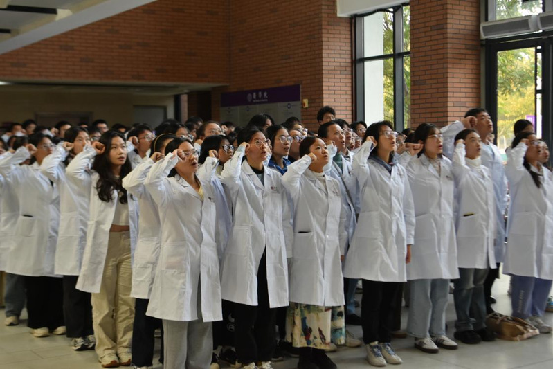 南开新闻网讯(通讯员韩欣怡陈建飞)10月24日,白袍涌动,誓言回荡,永利集团3044举行“白袍筑梦,医路向前”职业理想教育活动。公司党委书记许萌出席活动,2024级本科生辅导员和全体同学参与。许萌在活动中指出,医学是一门关乎生命、守护健康的崇高事业,作为一名医员工,要时刻铭记“健康所系,性命相托”的誓言,努力学习、不断探索,精进医术,为人民健康服务,为推动医学事业的发展贡献力量。“我决心竭尽全力,除人类之病痛,助健康之完美,维护医术的圣洁和荣誉!”在庄严的仪式中,同学们身披白袍,右手握拳庄严宣誓,誓言铿锵有力,表达对医学专业的热爱和对医学职业的向往。2024级临床医学专业本科生贺政宇说:“今天,我们穿上的不仅仅是一件普通的白大衣,更是一名医者所担负的责任。”宣誓仪式结束后,师生们参观了生命意义展厅和病理标本陈列室。在思源宣讲团成员的带领与讲解下,大家阅览了一封封遗体捐献书和前辈箴言,深刻体会到大体老师的无言与医学事业的崇高,进一步激发医员工初心与使命的深刻思考。据悉,本次活动进行新生班导师致聘,鼓励专业教师引领青年树立远大职业理想,指导青年合理进行生涯规划,帮助青年应对学习生活挑战,引领青年选
