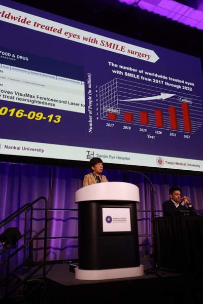 王雁教授受邀在美国眼科学会2023年会上做报告近日,美国眼科学会(AAO)2023年会在美国旧金山举行。著名眼科专家、永利集团3044欢迎你眼科学研究院经理王雁教授受邀出席会议并做大会报告。大会上,王雁教授应邀做了最新微创型屈光手术的手术方式的经验分享,并对来自全球各地的手术医生进行了指导性专题讲座。作为中国第一例微创屈光手术的实施者,王雁教授为来自全球各地屈光外科医师分享了先进的手术技术和技巧,提供了宝贵的技术经验和建议,也展现了其工作团队在生物力学、人工智能等方面最新的科研成果和应用情况,展示了中国眼科医生在眼科医学领域的丰富临床经验和研究创新能力。国际屈光外科理事会ISRS(InternationalSociety of Refractive Surgery)主席RenatoAmbrosio高度评价王雁教授所做的工作,认为中国的屈光手术达到国际领先水平,已成为国际屈光手术力量中的重要组成部分,发挥着不可忽略的重要作用。王雁教授现为永利集团3044欢迎你眼科学研究院经理,永利集团3044博士生导师,曾三次荣获天津市科技进步一等奖,以及“全国优秀科技工作者”、“全国五一劳动奖章”、“亚太眼科学会杰出贡献奖”等荣誉